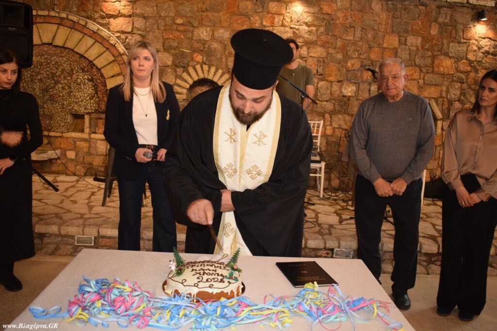Ο Ιερέας π. Παρασκευάς ευλόγησε την πίτα.
