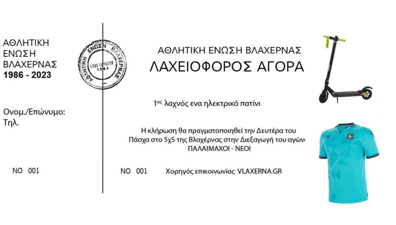 Η Αθλητική Ενωση Βλαχέρνας σας προσκαλεί στην έναρξη του ετήσιου καλοκαιρινού τουρνουά του συλλόγου.