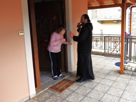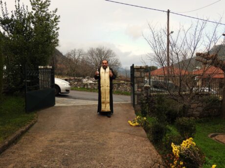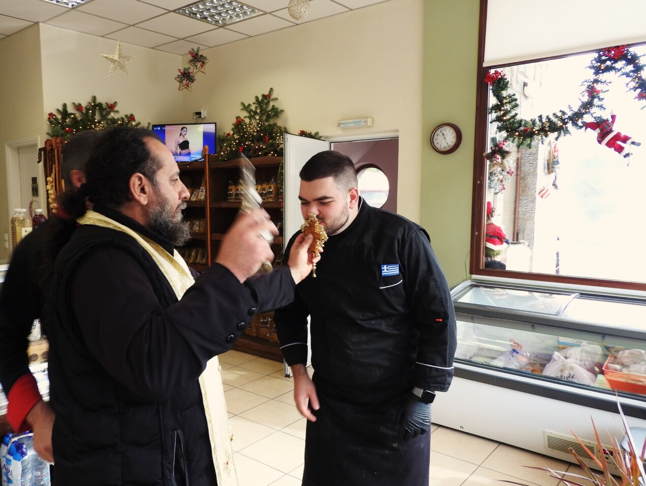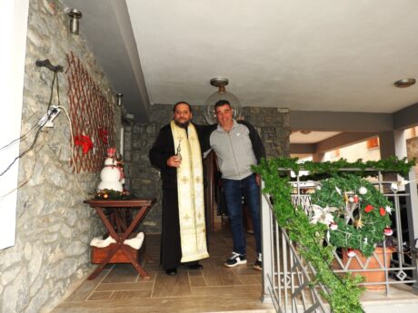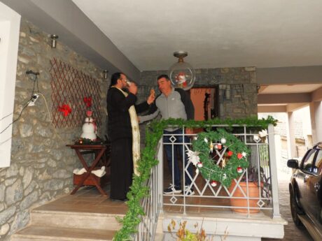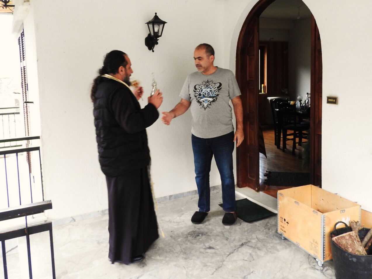 Της Πρωτάγιασης σήμερα, παραμονή των Θεοφανίων και ο π. Παναγιώτης Τρυφωνόπουλος αγίασε τα σπίτια και τα καταστήματα της Βλαχέρνας.