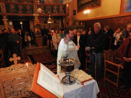 Στην μητρόπολη του χωριού μας τελέστηκε η θεία λειτουργία και ο Μεγάλος Αγιασμός από τον ιερέα π. Ιωάννη Κότσιφα. Οι επίτροποι μοίρασαν στο εκκλησίασμα τον Αγιασμό, για να τον μεταφέρουν στα σπίτια τους και να αγιάσουν με αυτόν τους ανθρώπους, τα σπίτια, τα ζώα και τα χωράφια.