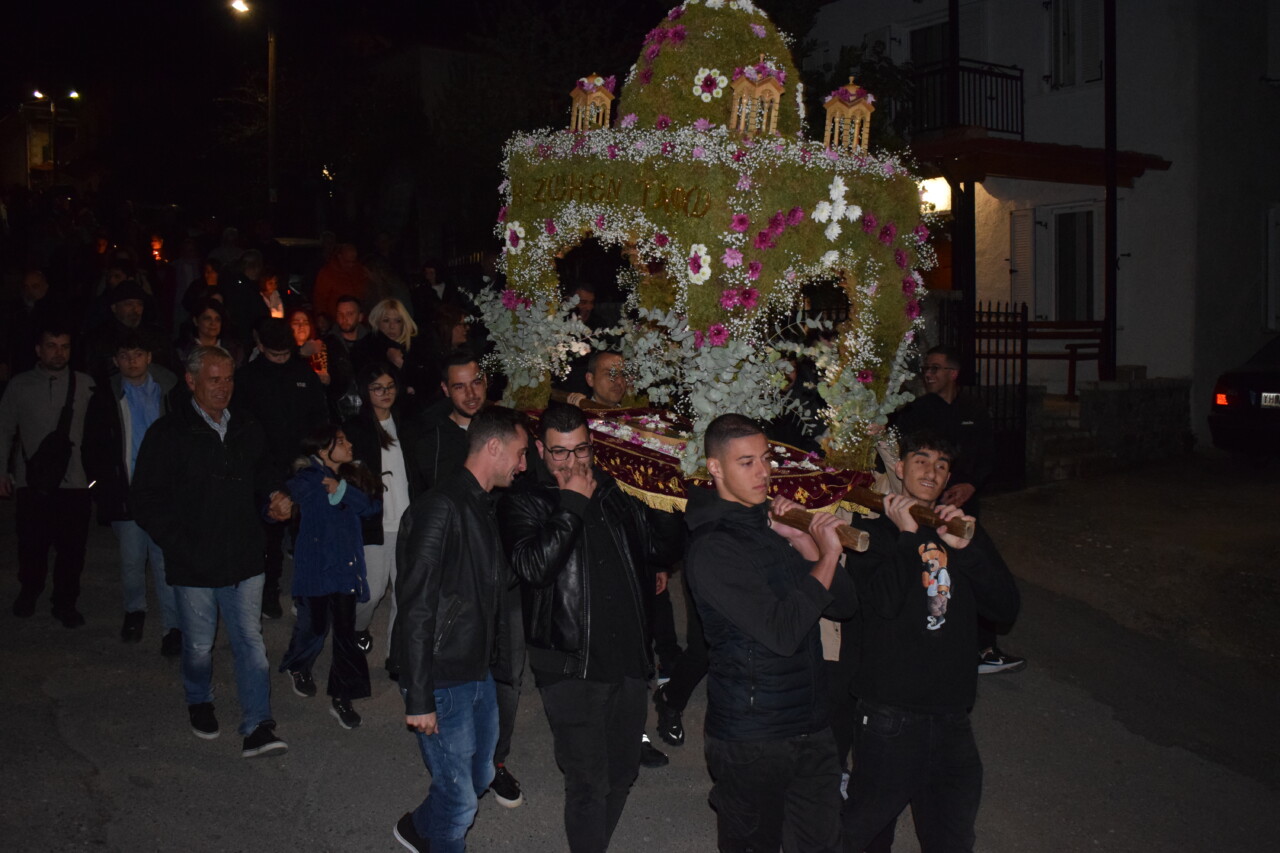 Η πομπή περιφοράς του Επιταφίου στους δρόμους του χωριού αποτελεί μια από τις πιο συγκινητικές στιγμές της Μεγάλης Εβδομάδας.